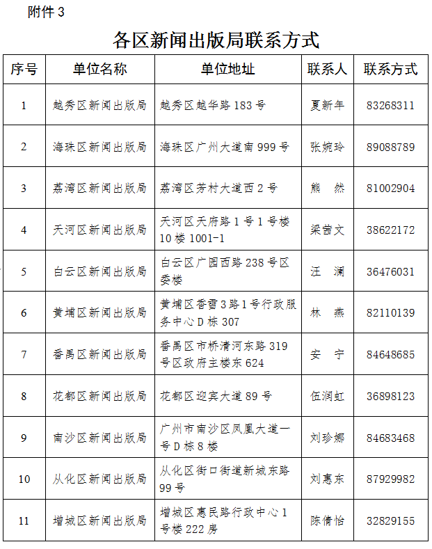3.各区新闻出版局联系方式