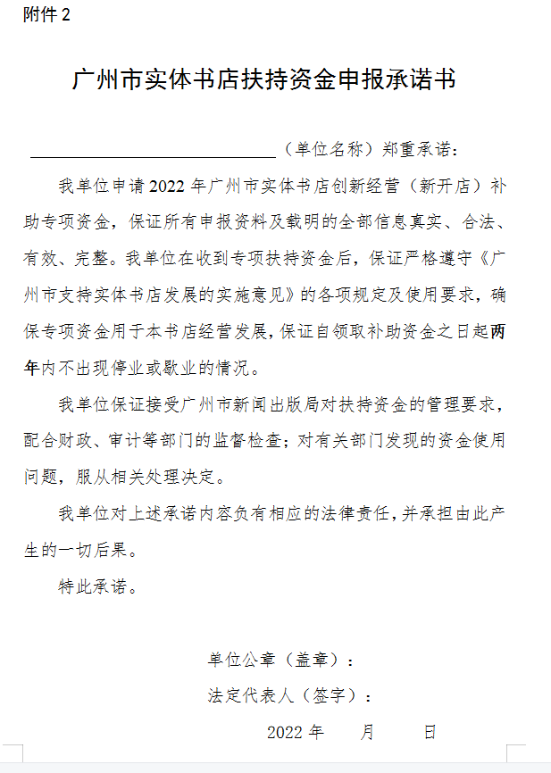 2.广州市实体书店扶持资金申报承诺书