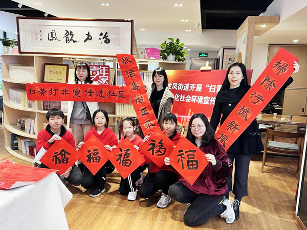 活动邀请多位书法大师书写春联,同时,书写了“扫除污秽新风荡,根治毒瘤正气腾”的宣传标语,用中国传统文化的方式来提高市民群众对“扫黄打非”工作的参与。并在活动现场设置“扫黄打非”宣传点,工作人员积极宣传“扫黄打非”、版权保护、规范文化市场经营秩序等方面的政策法规,让居民知晓“打黄扫非”工作,增强自身防范意识和法制意识。