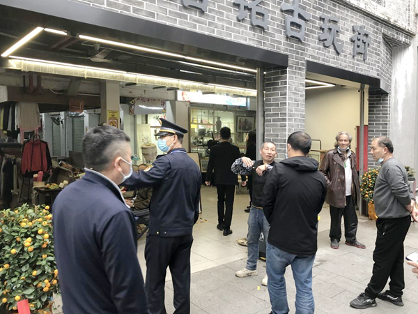 越秀区矿泉街道、六榕街道安排相关人员深入辖区书店、宗教场所等,重点查看是否存在淫秽色情、封建迷信内容以及涉政、涉党史等非法出版物,并向各经营场所负责人宣传“扫黄打非”相关法规,要求各家店主严格落实主体责任,切实提高守法意识,倡导广大居民自觉抵制淫秽音像制品、非法少儿出版物,杜绝知识产权犯罪。荔湾区金花街道对唐铭广场古玩街的文化产品进行检查,重点排查封堵政治性谣言类以及宣扬淫秽色情、侵权盗版等非法文化产品。