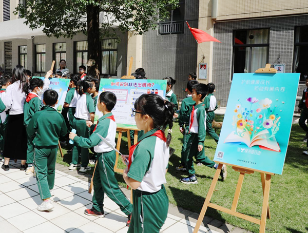 花都区新雅街道针对青少年好奇心强、辨别是非能力弱、容易受到诱惑走上歧途的特点,结合同学们的身心特点和认知水平,向花都区五小凤凰路小学的同学们普及如何在现实中辨认并抵制涉“黄”涉“非”信息,自觉做到绿色阅读、文明上网。