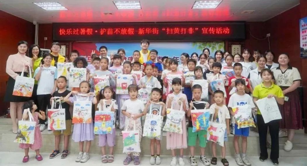 新华街道采取播放《拳“权”之心》和《“护苗”动漫》视频、快问快答、绘帆布袋等形式引导学生们了解“扫黄打非”相关知识,并派发清风侠帽子、“绿书签”等宣传品。在绘画制作环节,同学们充分发挥想象力和创造力,用绘画来表达自己对“扫黄打非”的理解,展示自己心中清风侠形象,努力争当“护苗”小卫士。